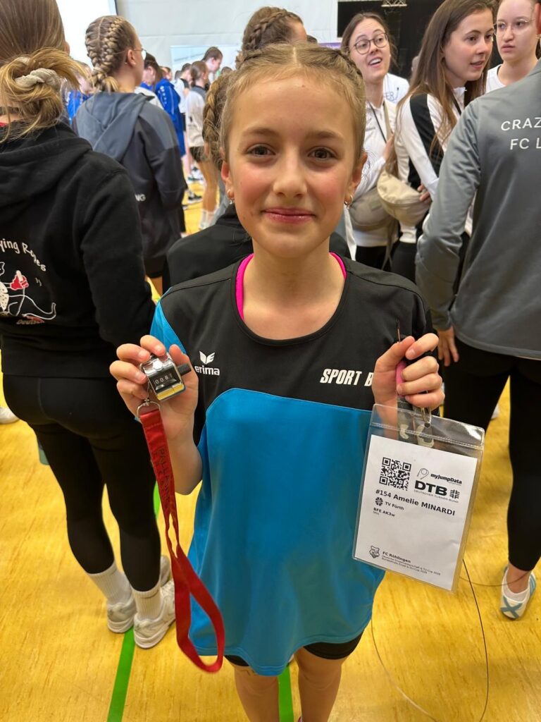 Am Wochenende des 21. und 22. März fanden die deutschen Einzelmeisterschaften und das Bundesfinale vom Rope Skipping in Ellwangen statt. Dort konnte man sich über zwei Wettkämpfe (Gaumeisterschaft und Landesmeisterschaft) mit einer bestimmten Punktzahl qualifizieren. Amelie schaffte es sich bei der hessischen Einzelmeisterschaft im November bei 30 Sekunden Speed mit 79 Zählern für das Bundesfinale zu qualifizieren.